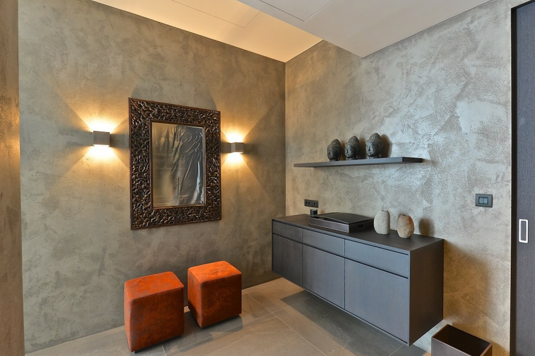 Estetické a funkční řešení odvěké otázky: co s holými stěnami? Na rozdíl od malby jsou stěrky věčné a nepřítomnost spár přispívá k větší hygieničnosti. Stěrky se dají omývat a často i opravit.