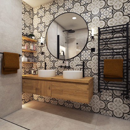 Výsledkem je moderní, odvážná a přesto velmi útulná koupelna, která zaujme každého, kdo hledá originální design a osobitý styl.
