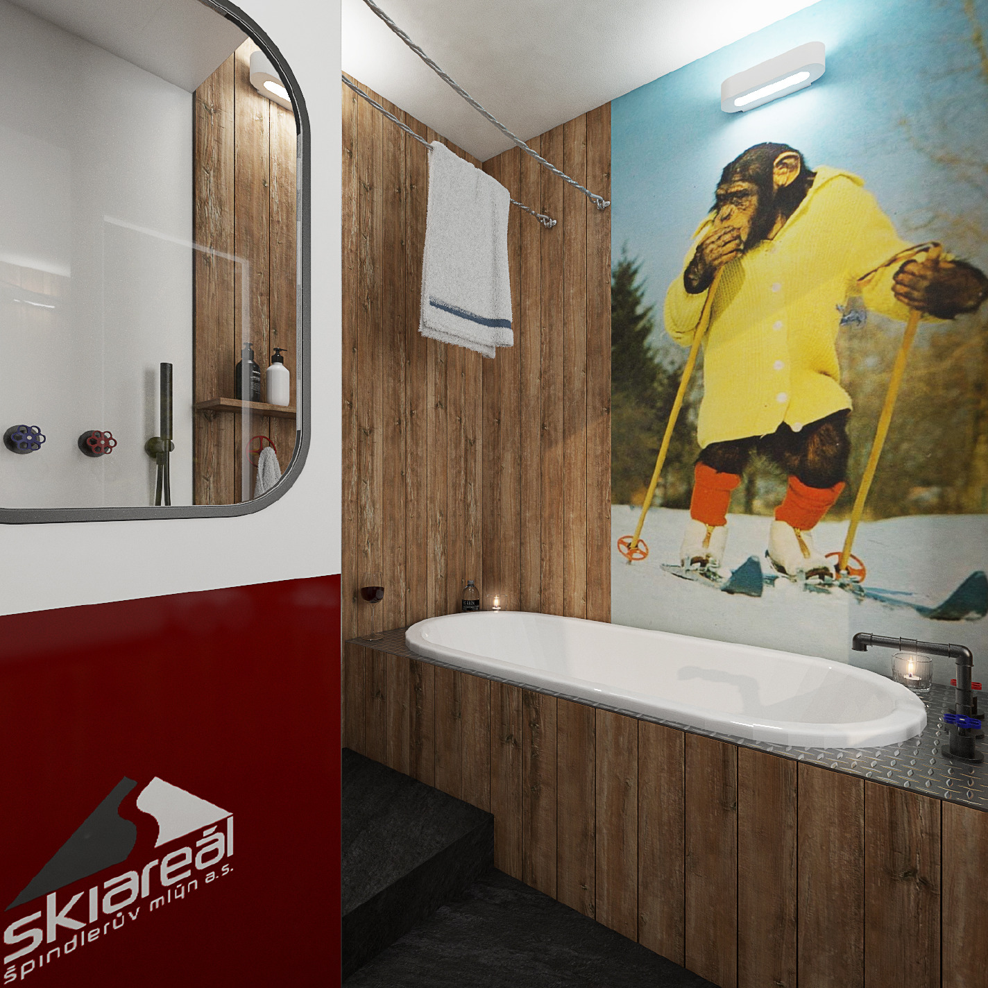 Dnešní koupelny nabízejí opravdu nekonečné možnosti. Důkaz přináší lyžařská koupelna Monkey, která se ukrývá ve stylovém apartmánu ve Špindlerově mlýně. Klientka si přála, aby ji hory obklopovaly nejen venku, ale i uvnitř soukromé oázy klidu a odpočinku. Designér Jindřich Kobr ji toto přání bezezbytku splnil.
