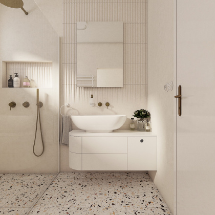 Náš tým architektů vám také může pomoct se zpracováním vizualizací a dodáním půdorysů i spárořezů pouze na základě vašeho rámcového zadání.